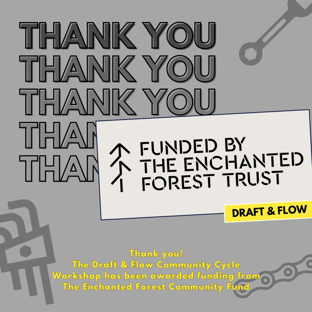 Excited to announce the Draft & Flow Community Cycle Workshop has been awarded funding from The Enchanted Forest Community Fund! These funds are designated for outfitting the workshop for the Aberfeldy community to build & maintain bikes, and learn bike repair. We're aiming to open the doors in late June/July so stay tuned!